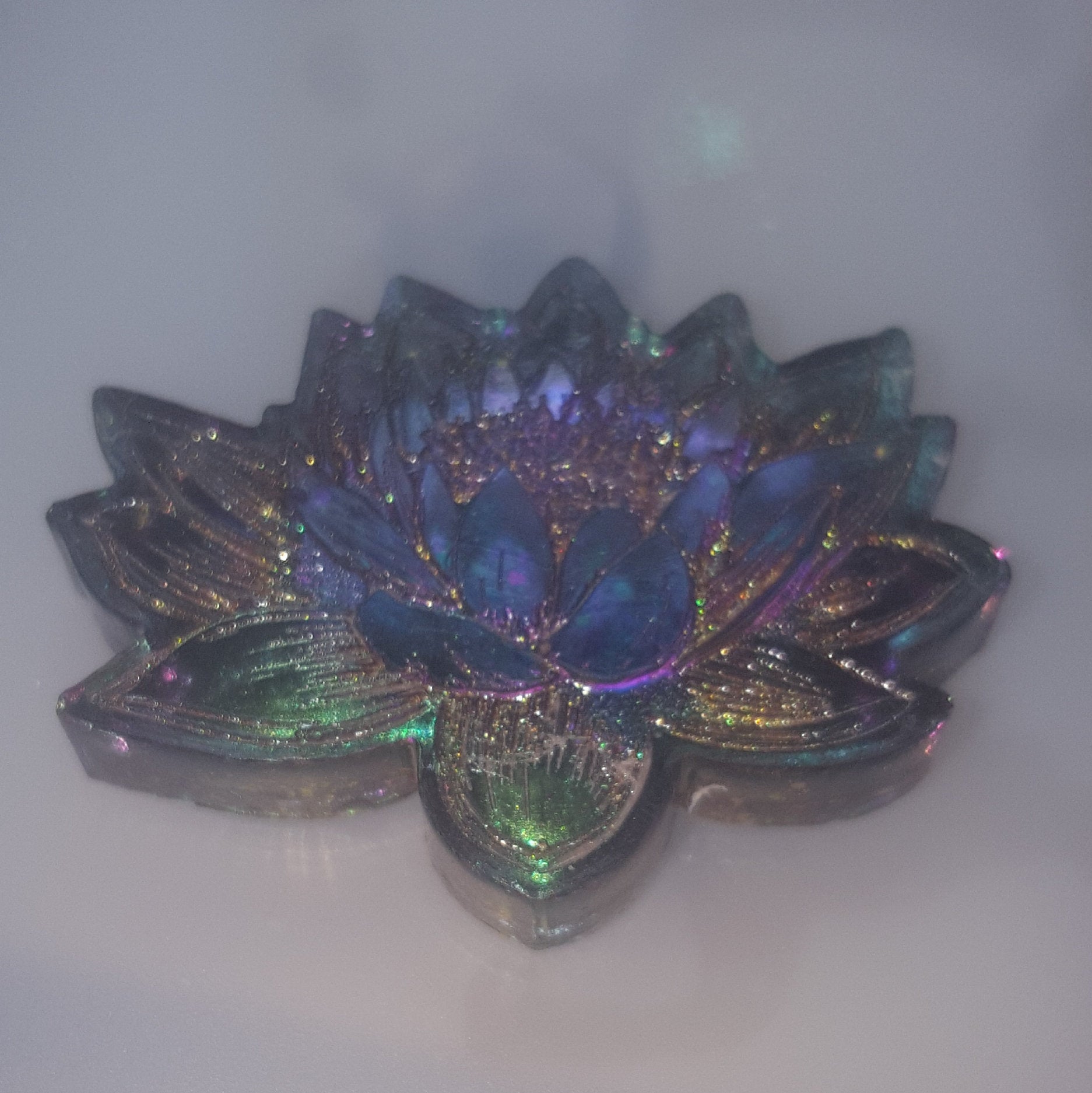 This mold contains our beautiful etched Lotus and Lily Flowers. The mold also comes with a tulip flower bezel and various sized round gemstones. Shipping is adjusted and refunded if you buy 2 or more molds. The mold pictured is made with high quality platinum silicone, making it easy for extraction once the piece is cured. If a mold is shiny then the piece will be shiny. If the mold is matte then the piece will be matte. Ideal for the creation of unique pieces and to replicate with materials such as resin, polymer clay, fimo, soap, wax, and much more!! Easy clean up with warm water and soap. This listing is for the mold only, the pieces shown in the picture are not included. Can brush powders into molds and use glass glitters to enhance the look. Check out Kat Lick Studios videos for great ideas! https://www.facebook.com/Kat-Lick-Studios-430196924032782 ATTENTION PLEASE!! All molds are handmade by us and have 10 to 15 working days from the date the order is placed to shipping date. Due to the extreme amount of orders it may take an extra 3-5 days for processing. Thank you for your patience.
