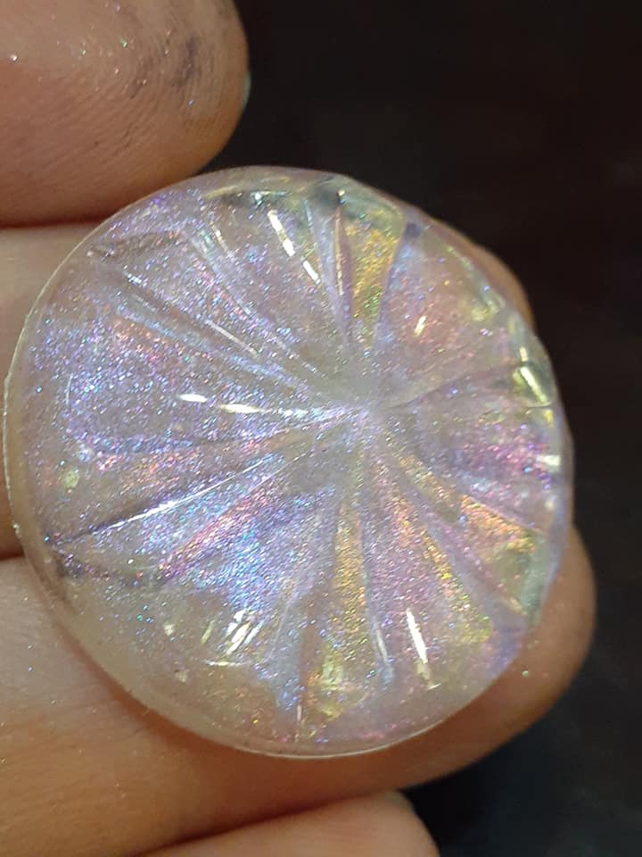 Shifts between beautiful purples, pinks, blues, greens, and golds. This is just beautiful brushed on the back or just a tiny bit mixed in clear resin. You will receive 1 gram in screw cap jar.